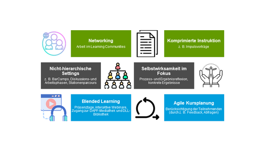 - Erweiterung des professionellen Wissens für die Fragen der Steuerung von Personal- und Organisationsentwicklung unter den spezifischen Bedingungen der Digitalität